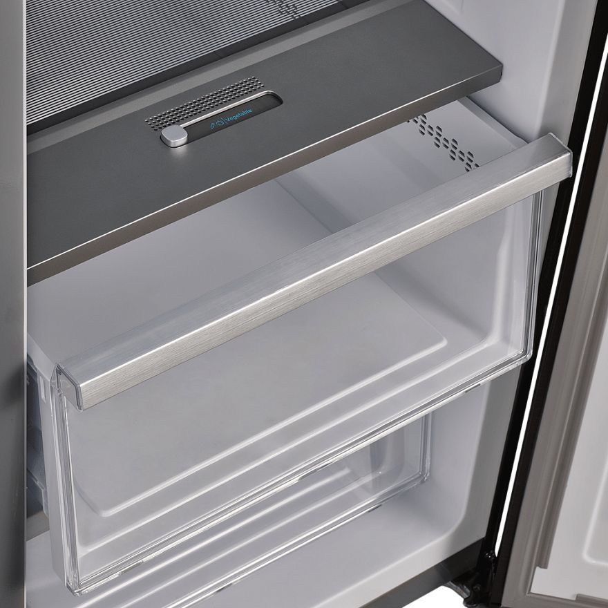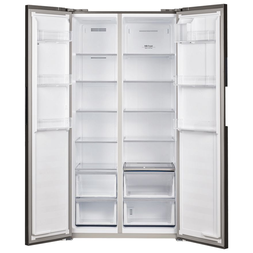 Холодильник обладает высокой вместимостью: общий объем составляет 683 литра, из которых 365 литров отводится под холодильное отделение, а 241 литр - под морозильное. Такая ёмкость позволит вам хранить большое количество продуктов, не беспокоясь о нехватке места. Благодаря системе NoFrost, которая предусмотрена как в морозильном, так и в холодильном отделении, вам не придется тратить время на размораживание. Управление осуществляется с помощью электронного интерфейса и сенсорных переключателей, что делает его использование удобным и интуитивно понятным. Кроме того, наличие дисплея облегчает контроль за работой прибора и позволяет точно регулировать температуру в отделениях.