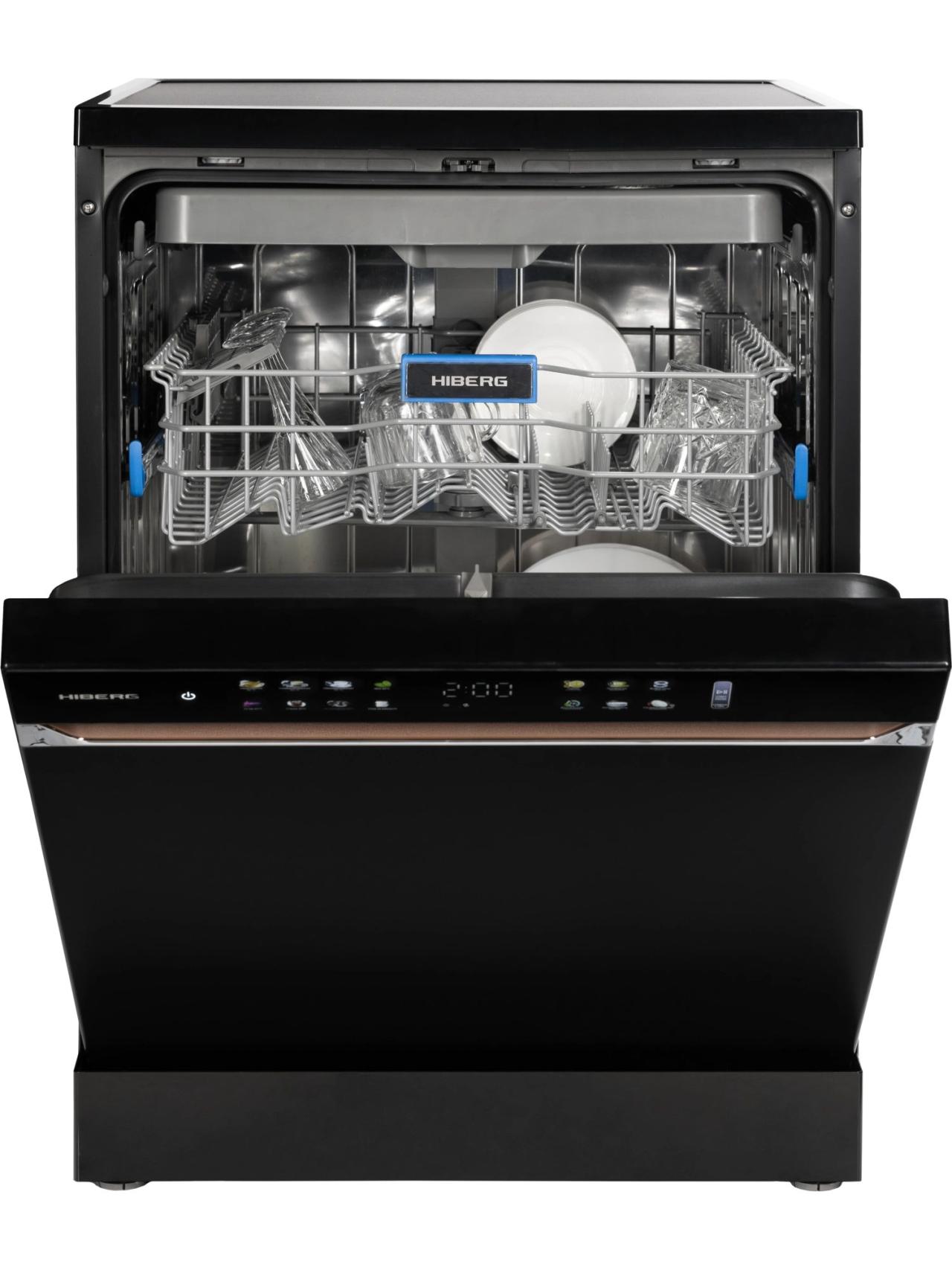 Для комфорта предусмотрены выбор зоны мытья (в одной корзине), таймер отсрочки, цветная сенсорная панель с большим дисплеем. Премиальный дизайн подчеркнут стильными кожаными вставками и единой стилистикой со стиральной машиной HIBERG I-DDQ10-814 B. За безопасность отвечают полная защита от протечек AquaStop и блокировка от детей. Гарантия — 2 года.