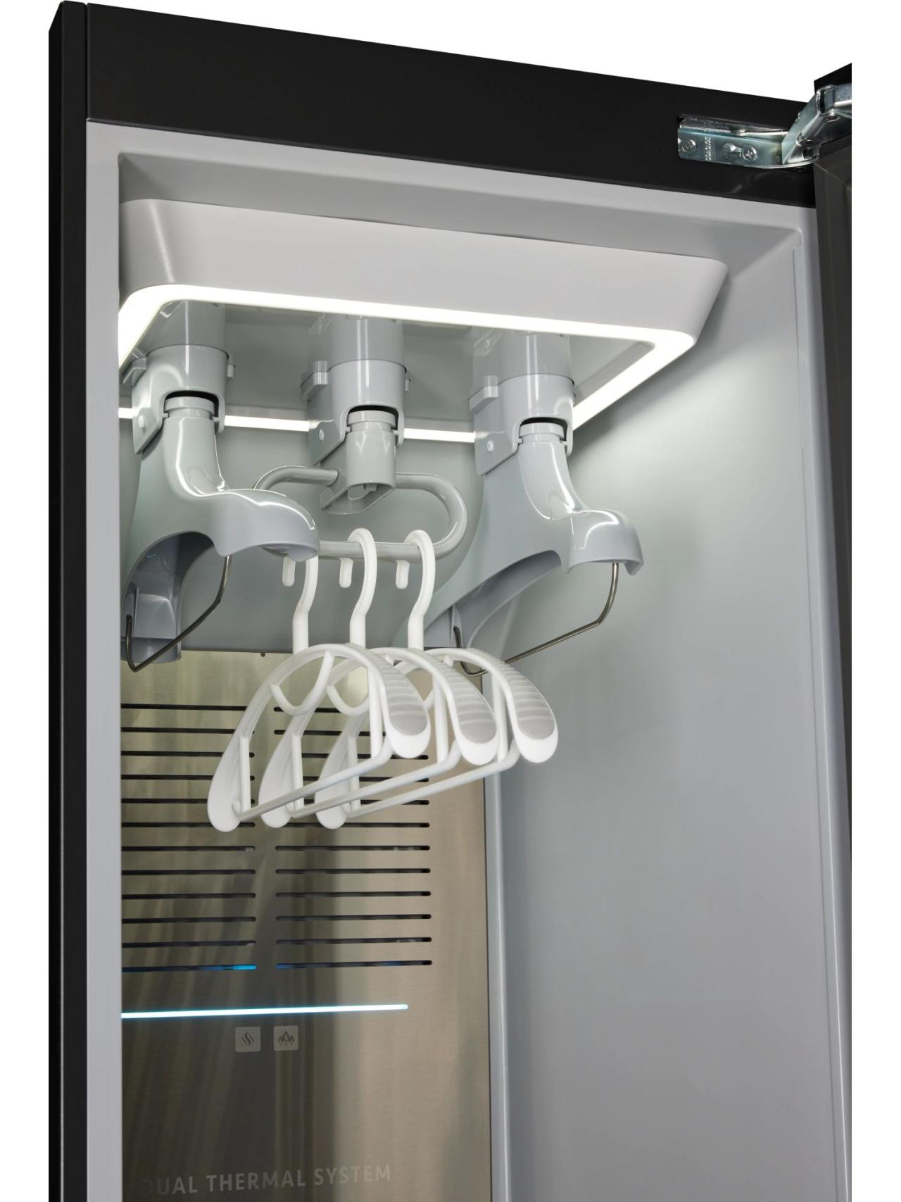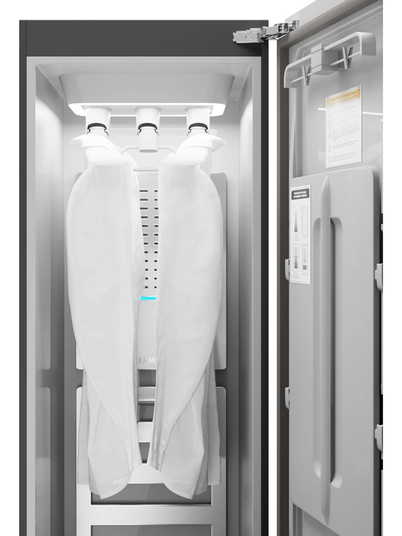 За чистоту и безопасность отвечает комплекс технологий: плазменная стерилизация вместе с паром работает на уровне волокон, снижая количество бактерий и аллергенов. При этом конденсационная сушка с тепловым насосом бережно удаляет влагу без пересушивания и деформации тканей — от сорочек до плотной верхней одежды.